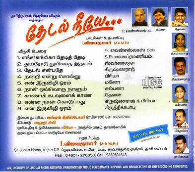 . Thedal Neeyae I.VijayaKumar M.A.,M.Ed St.Jude's Home Nediya Vilai Samiyaar Madam Kaattathurai Anjal Kanyakumari Dist Tel:4651-276650 Cell : 9360591613